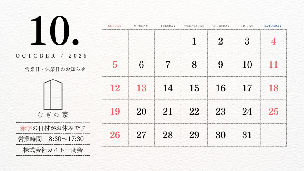 2025年10月営業日・休業日のお知らせ